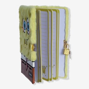Caderno Diário Com Cadeado Pelúcia Bob Esponja Precisa de um caderno para escrever as suas aventuras do dia a dia na Fenda do Biquini? A gente te ajuda! Com a capa em pelúcia e um cadeado para manter todos os seus segredos a salvo, esse caderno vai virar seu maior confidente! Não importa se é embaixo da água ou não, esse caderno te acompanha em todas as suas aventuras! O produto é importado, feito em pelúcia, possui detalhes incríveis que vão fazer você se apaixonar! Se você vive momentos únicos embaixo da água e quer escrever sobre eles, a gente te ajuda! Com espaço para você escrever sobre todas as suas aventuras, além de contar com um cadeado para ninguém ler seus segredos! Especificações: Altura: 21cm | Comprimento: 2cm | Largura: 51cm | Peso: ,280g| Material: Papel, Poliéster e Couro Sintético| Conteúdo: 1 cadeado, 2 chaves| 80 Folhas