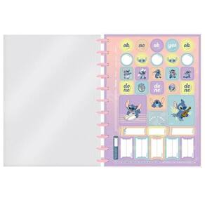 O Stitch (também conhecido como Experimento 626) é um dos personagens mais queridos e divertidos do universo da Disney. O Caderno Discbook busca retratar o personagem no mundo das redes sociais, com elementos e cores características em sua composição.Detalhes:1 opção de capaAdesivo EspecialBolsa PlásticaCapa em TecidoDisco RosaFormato: 200 x 275Gramatura: 90 g/m²Guarda DecoradaHot StampingN° de FLS: 80 (1 matéria) e 160 (10 matérias)Pauta Decorada