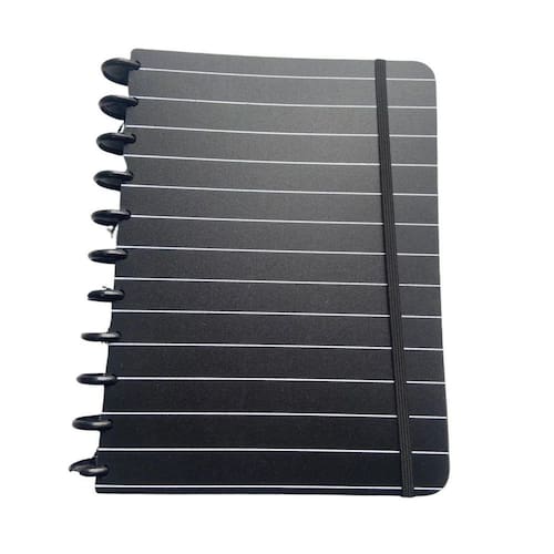 11 discos pretos - Mecanismo prático para personalização do caderno