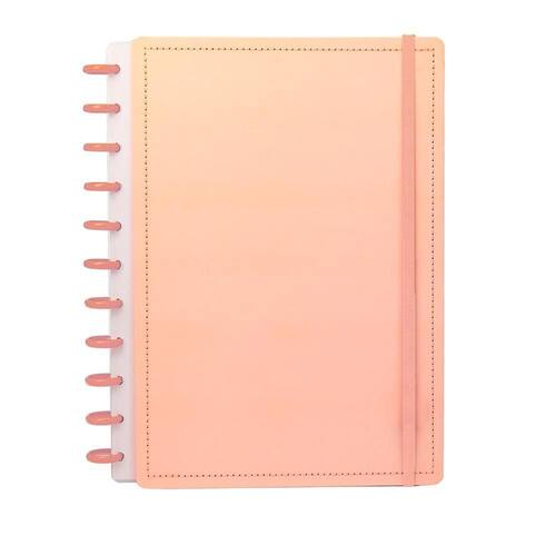 Caderno Disko All Peach G 210x280mm c/80fls DK21D250 Conheça o caderno Diskô, um caderno prático e personalizável que se adapta às suas necessidades, possibilitando adicionar, remover e reorganizar as folhas como quiser. Possui um sistema de encadernação inovador, que usa discos para prender as folhas do seu caderno.