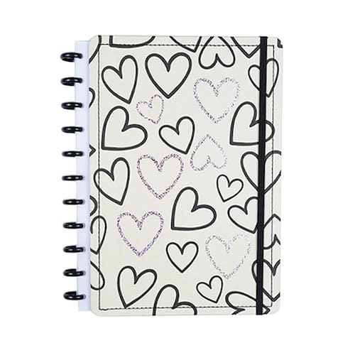 Caderno Disko Loves M 190x255mm 80fls DK22E276 Conheça o caderno Diskô, um caderno prático e personalizável que se adapta às suas necessidades, possibilitando adicionar, remover e reorganizar as folhas como quiser. Possui um sistema de encadernação inovador, que usa discos para prender as folhas do seu caderno.