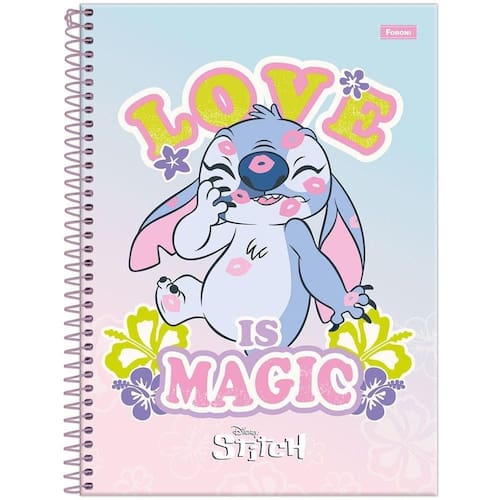 - 1 Caderno Espiral Capa Dura Universitário 1 Matéria Disney Stitch 80 Folhas FORONI