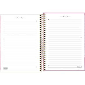 Capa: dura Espiral colorido Folhas: pautadas decoradas Parte interna da capa decorada Produto certificado: FSC Formato: 140mm x 200mm Gramatura: 56 g/m² Número de folhas: 80 folhas