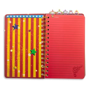 Você nunca viu um círculo como este antes. Não seja tímido! Dê um passo à frente com este caderno espiral exclusivo inspirado em Killer Klowns from Outer Space. Você terá uma experiência de circo diferente de qualquer outra com este diário, incentivando você a tomar nota de todas as coisas estranhas e maravilhosas em seu universo. A atraente arte da capa apresenta os Killer Klowns prontos para desencadear o caos, decorados com pedaços de pipoca espalhados pela cena cósmica. O interior lembra a barraca de circo Big Top, atraindo ainda mais os terráqueos com cinco seções com abas. Cada aba colorida apresenta a você um Klown diferente da invasão alienígena de Crescent Cove. Deixe o show começar. Experimente um mundo de caos colorido com este diário em espiral. As abas inteligentemente projetadas permitem uma navegação sem esforço pelo seu diário de aventuras bizarras, sessões de brainstorming malucas e descobertas de origem celestial. Se você estiver escrevendo notas sérias ou rabiscando seu próximo ato de circo, este caderno certamente dará um toque sinistro à sua criatividade. Observe o show mais louco da Terra com este artigo de papelaria oficialmente licenciado, mergulhando você na diversão cósmica dos Killer Klowns from Outer Space.