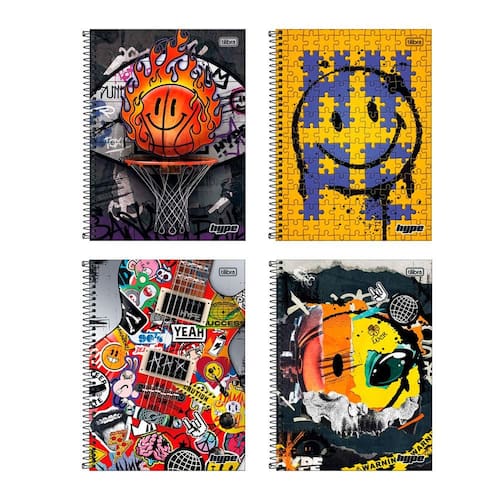 O Caderno Espiral Capa Dura Universitário 10 Matérias Hype 160 Folhas possui capa dura com a parte interna decorada, bolsa plástica para guardar trabalhos e anotações, folha com adesivos funcionais, folhas pautadas e espiral colorido. Ideal para o dia a dia na escola ou na faculdade. Hype entra para linha de marcas básicas da Tilibra. Caracterizada por uma paleta de cores autêntica e vibrante do universo street, a marca traz grafites, ilustrações e frases irreverentes, inspiradas na essência urbana e nas expressões artísticas e comportamentais.
