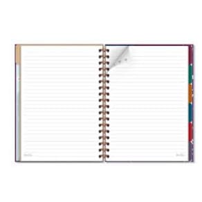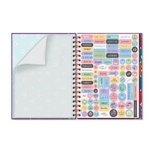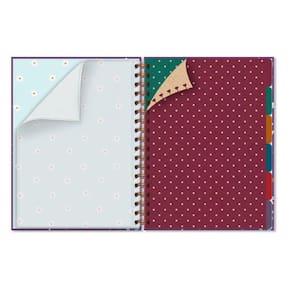Caderno folhas removiveis Alegria Fina Ideia A5 Capa dura, miolo pautado com 80 folhas removíveis e reposicionáveis, formato 16,5 cm x 23,2 cm, em papel offset 90 g/m2 a tinta das canetas não passa para o outro lado , 6 divisórias removíveis e reposicionáveis coloridas em papel kraft, encadernação wire-o e elástico para fechamento. Acompanha envelope resistente para documentos e folha de adesivos.