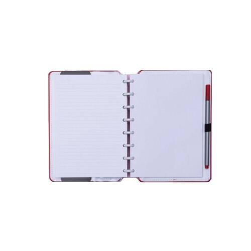Um pouco maior que seu irmão Inteligine, o A5 traz mais espaço para você escrever, desenhar, rabiscar, mas sem ocupar um espação na mochila Capa dura, miolo com 80 folhas, 60 folhas pautadas e 20 folhas brancas para impressão formato 140mm x 200mm, papel off set 90g, 08 discos em ABS, revestimento especial na capa e elástico para fechamento. Acompanha 01 bolsa plástica, 01 folha de instrução de uso e manuseio, 01 folha de identificação com calendário no verso, 04 divisórias em polipropileno com aba para identificação e suporte interno para caneta.