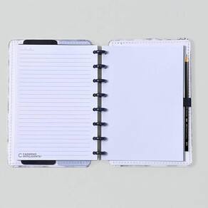 A5: Capa e contracapa rígidas, 01 bolsa plástica, 01 folha de instrução de uso e manuseio, com refis e acessórios da marca disponíveis no verso, 01 folha de identificação com calendário no verso, 04 divisórias com abas para identificação 02 pretas e 02 transparentes , 80 folhas offset 90g 60 folhas pautadas e 20 folhas lisas brancas para impressão , 01 suporte com elástico para 01 caneta ou 01 lápis e discos M + elástico. Medidas aproximadas do produto - Comprimento: 21 cm - Altura: 7 cm - Largura: 27 cm - Peso: 700 g Ean: 7895099704891
