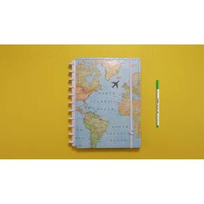 Caderno Inteligente BY Gocase Mapa Mundi Azul Tamanho Grande 80 Folhas