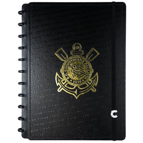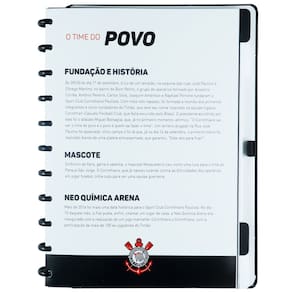 Com capa exclusiva nas cores características do time e discos e elástico preto com acabamento em hotstamping, ele é o caderno do Corinthians que você sempre sonhou em ter! E tem mais: essa edição especial também vem com selo oficial, folha de adesivos, folha exclusiva com a evolução dos escudos, biografia e folha de escalação preta e branca, 4 divisórias, folhas pautadas personalizadas oficiais do clube e 20 folhas lisas para impressão!