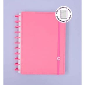O modelo G+ junta o tamanho expansivo do Caderno Inteligente Grande com a capacidade ainda maior de armazenamento dos discos G para criar a maior combinação possível do Caderno Inteligente. E agora, o CI mais pedido por estudantes tem também uma versão com linhas brancas E claro, poucas cores no mundo são tão lindas e cheias de atitude quanto o rosa E para você arrasar nos estudos e também no visual dos seus materiais, pode apostar no caderno universitário rosa sem medo O modelo All Pink G+ vem com capa, discos e elásticos todos no mesmo tom incrível de rosa, para levar muito mais alegria para a sua rotina. Conheça também nossas outras cores, tamanhos e combinações de caderno, ou monte o seu na nossa seção Do It Yourself DÚVIDAS FREQUENTES: Caderno Grande ou G+, qual a diferença O caderno G+ é uma variação do caderno grande também conhecido como tamanho universitário , perfeito para quem precisa usar muitas folhas, os dois tem a mesma dimensão de capa e contra 21,5cm X 28cm, o que diferencia é o tamanho dos discos e a quantidade de folhas que cada um deles comporta: