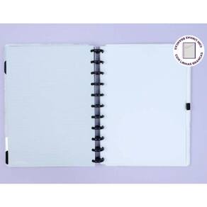 - Capa e contracapa rígidas, 01 bolsa plástica, 01 folha de instrução de uso e manuseio, com refis e acessórios da marca disponíveis no verso, 01 folha de identificação com calendário no verso, 04 divisórias com abas para identificação 02 pretas e 02 transparentes , 140 folhas 90g 120 folhas pautadas linhas brancas e 20 folhas lisas brancas para impressão , 01 suporte com elástico para 01 caneta ou 01 lápis e discos G + elástico. Ean: 7895099704525