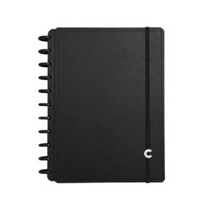 Caderno Inteligente G+ Preto 140Fls O modelo G+ junta o tamanho expansivo do Caderno Inteligente Grande com a capacidade ainda maior de armazenamento dos discos G para criar a maior combinação possível do Caderno Inteligente. - Marca: Caderno Inteligente- Cor: Preto - Capa e contracapa rígidas- 01 bolsa plástica- 01 folha de instrução de uso e manuseio, com refis e acessórios da marca - 01 folha de identificação com calendário no verso- 01 suporte com elástico para caneta ou lápis Não acompanha canetas ou lápis - 04 divisórias com abas para identificação 02 pretas e 02 transparentes - Possui 140 folhas 120 folhas pautadas e 20 folhas lisas brancas para impressão - Gramatura: 90g/m- Formato: Grande- Discos no tamanho G+- Dimensões: 21,5 x 28cm LxA - Composição: Tecidos, celulose, ABS, PP, latex, poliéster e aço
