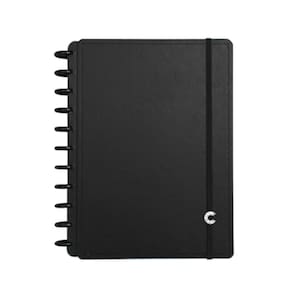 - Marca: Caderno Inteligente - Cor: Preto - Capa e contracapa rígidas - 01 bolsa plástica - 01 folha de instrução de uso e manuseio, com refis e acessórios da marca - 01 folha de identificação com calendário no verso - 01 suporte com elástico para caneta ou lápis Não acompanha canetas ou lápis - 04 divisórias com abas para identificação 02 pretas e 02 transparentes - Possui 140 folhas 120 folhas pautadas e 20 folhas lisas brancas para impressão - Gramatura: 90g/m - Formato: Grande - Discos no tamanho G+ - Dimensões: 21,5 x 28cm LxA - Composição: Tecidos, celulose, ABS, PP, latex, poliéster e aço Ean: 7895098728720