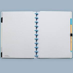 Caderno Inteligente Grande All Blue Azul 80 Folhas Caderno Inteligente Grande All Blue Azul 80 Folhas Grande: Capa e contracapa rígidas, 01 bolsa plástica, 01 folha de instrução de uso e manuseio, com refis e acessórios da marca disponíveis no verso, 01 folha de identificação com calendário no verso, 04 divisórias com abas para identificação 02 pretas e 02 transparentes , 80 folhas offset 90g 60 folhas pautadas e 20 folhas lisas brancas para impressão , 01 suporte com elástico para 01 caneta ou 01 lápis e discos M + elástico. tamanho: 28cm X 21,5cm