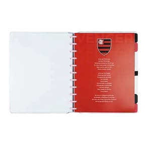 Caderno Inteligente Grande Flamengo Rosa Um caderno oficial para você, você torcedor do mengão, que procura uma solução premium em suas anotações, estudos e escrita. Na cor rosa criado exclusivamente para a apaixonada torcida Flamenguista, o Caderno Inteligente Mengo Rosa. Com capa exclusiva e discos + elástico rosa e branco, ele é o caderno do Rubro Negro que você sempre sonhou em ter, versátil e muito prático para qualquer necessidade. E tem mais: essa edição especial também vem com selo oficial, folha de adesivos, folhas exclusivas com hino, biografia e escalação, divisórias coloridas e folhas pautadas personalizadas oficiais do clube O que contém: Capa e contracapa rígidas, 01 bolsa plástica, 01 folha de instrução de uso e manuseio, com refis e acessórios da marca disponíveis no verso, 01 folha de identificação com calendário no verso, 04 divisórias com abas para identificação 02 pretas e 02 vermelhas 80 folhas offset 90g 60 Folhas Pautadas com logo do time e 20 folhas lisas brancas para impressão