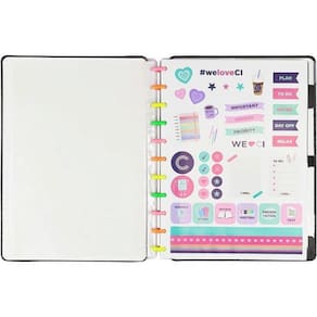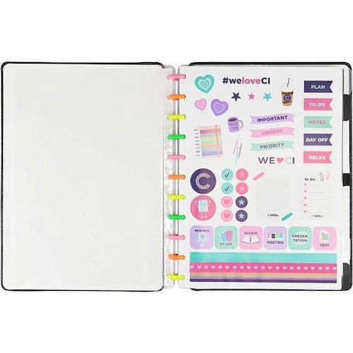 O novo Caderno Glitter Neon Black possui muito brilho na capa para voce brilhar ainda mais nos estudos e anotacoes do dia a dia.