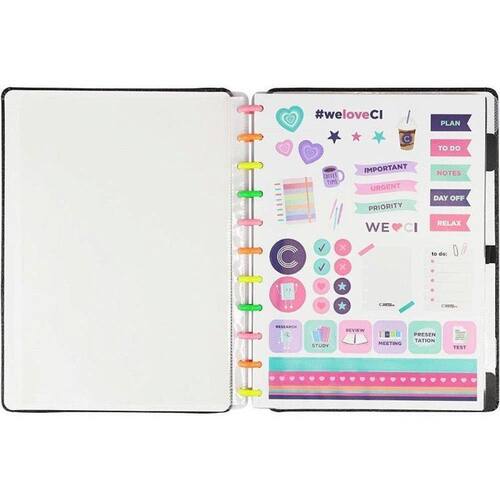 Um verdadeiro show de cores, brilho e glamour no Caderno Lets Glitter Neon Black O novo Caderno Glitter Neon Black possui muito brilho na capa para voce brilhar ainda mais nos estudos e anotacoes do dia a dia. Perfeito para voce que busca uma solucao premium e cores para alegrar a sua rotina. Edicao especial nos tamanhos Grande, medio e A5 -