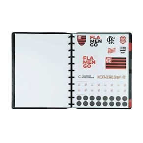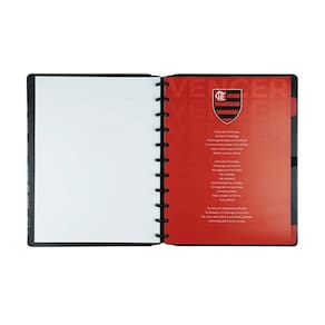 Caderno inteligente grande preto um caderno do oficial para você, torcedor do mengão, que procura uma solução premium em suas anotações, estudos e escrita. Nas suas cores favoritas, vermelho e preto, criado exclusivamente para a apaixonada torcida flamenguista: chegou o caderno inteligente rubro negro. Com capa exclusiva nas cores características do time e discos e elástico preto e vermelho, ele é o caderno do que você sempre sonhou em ter versátil e muito prático para qualquer necessidade de um flamenguista de coração. E tem mais: essa edição especial também vem com selo oficial, folha de adesivos, folhas exclusivas com hino, biografia e escalação, divisórias coloridas e folhas pautadas personalizadas oficiais do clube