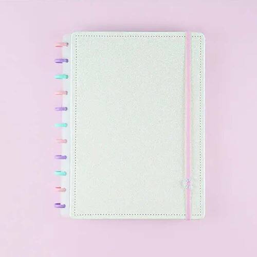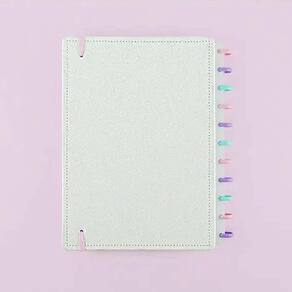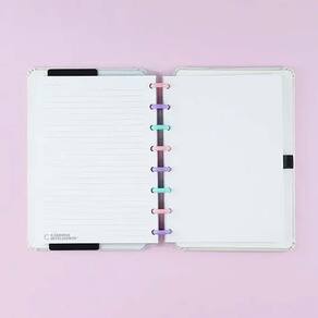 Capa e contracapa rígidas; 01 bolsa plástica; 01 folha de instrução de uso e manuseio, com refis e acessórios da marca disponíveis no verso; 01 folha de identificação com calendário no verso; 04 divisórias com abas para identificação (02 pretas e 02 transparentes); 80 folhas offset 90g (60 folhas pautadas e 20 folhas lisas brancas para impressão) e 01 suporte com elástico para 01 caneta ou 01 lápis. Ean: 7908615800394