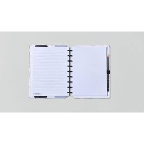 O caderno que você tira e coloca folhas quando quiser ; No Caderno Médio contém: 80 folhas 90g 60 folhas pautadas e 20 folhas lisas brancas Capa e contracapa rígidas01 bolsa plástica 01 folha de instrução de uso e manuseio 01 folha de identificação com calendário no verso 04 divisórias com abas 02 pretas e 02 transparentes 01 suporte com elástico para 01 caneta ou 01 lápis e discos M + elástico. Medidas aproximadas do produto - Comprimento: 25,5 cm - Altura: 2 cm - Largura: 20 cm - Peso: 630 g Ean: 7895099704976