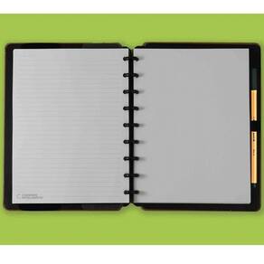 Caderno Inteligente Medio Caramel - 80 Folhas Caderno Inteligente Medio All Blue - 80 Folhas Medio: Capa e contracapa rígidas, 01 bolsa plástica, 01 folha de instrução de uso e manuseio, com refis e acessórios da marca disponíveis no verso, 01 folha de identificação com calendário no verso, 04 divisórias com abas para identificação 02 pretas e 02 transparentes , 80 folhas offset 90g 60 folhas pautadas e 20 folhas lisas brancas para impressão , 01 suporte com elástico para 01 caneta ou 01 lápis e discos M + elástico.