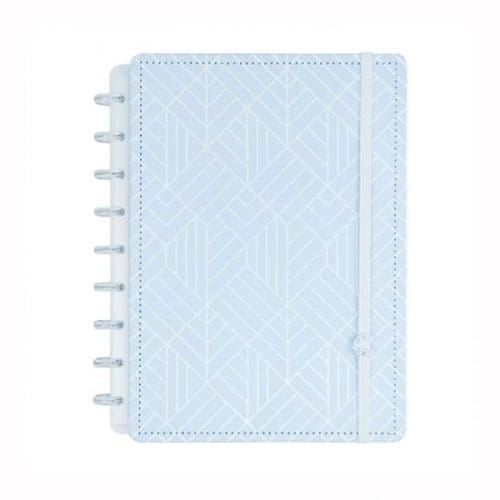 Um design único e sofisticado em azul sólido e detalhes em high print. A experiência fica completa com as folhas azuis linhas brancas. um diferencial para estudantes e apaixonados por papelaria.