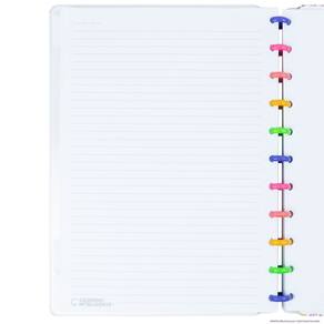 Disponível em três tamanhos (A5, Médio e Grande), este caderno vem com tudo que você precisa para se organizar: capa e contracapa rígidas, folha de adesivos, divisórias coloridas e 80 folhas de alta qualidade (60 pautadas e 20 lisas) para que suas ideias fluam sem limites.