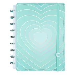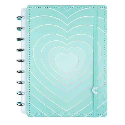 Caderno Inteligente Turquoise Love - Médio No caderno pode ser inserido diversos tipos de papeis e acessórios como: organizador de cartão, divisórias, folhas de agenda, folhas pautadas, folhas lisas com impressões, etc. Conta com um suporte interno para caneta em sua lateral. – Grande: Capa e contracapa rígidas, 01 bolsa plástica, 01 folha de instrução de uso e manuseio, com refis e acessórios da marca disponíveis no verso, 01 folha de identificação com calendário no verso, 04 divisórias com abas para identificação (02 pretas e 02 transparentes), 80 folhas offset 90g (60 folhas pautadas e 20 folhas lisas brancas para impressão), 01 suporte com elástico para 01 caneta ou 01 lápis e discos M + elástico. Obs.: Por se tratar de um produto artesanal, a tonalidade pode variar um pouco. ? O caderno que você tira e coloca folhas quando quiser ? Caderno inteligente, só Caderno Inteligente® – As tonalidades de cores podem variar de acordo com as configurações de seu monitor ou celular, as imagens são meramente ilustrativas. Ean: 7908615805351