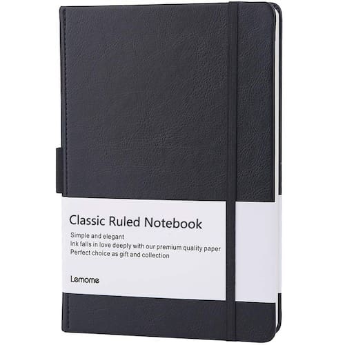 Capa rígida de couro sintético ótima para todos os tipos de ocasiões. O design resistente garante que seu diário fique bem protegido e tenha maior longevidade. Os cadernos Lemome são únicos, sem dois sendo exatamente iguais – uma lembrança especial para seus pensamentos, planos e ideias. - Capa resistente e suporte para caneta – este caderno com papel quadriculado, que é confortável e pode ser limpo, tem capa rígida e resistente, protege sua arte por anos. O suporte elástico para caneta a deixa sempre disponível e bem armazenada.