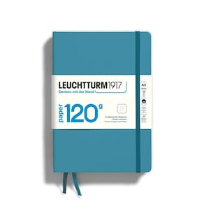 LEUCHTTURM1917 - Caderno de capa dura pontilhado A5 médio (azul nórdico) - 203 páginas numeradas com papel de 120 g/m² - Qualidade desde 1917: Experiência e consistência são requisitos importantes para a qualidade. A qualidade dá às ideias uma base sólida sobre a qual elas podem se desenvolver. Estamos convencidos de que pequenos detalhes podem fazer uma grande diferença - Os detalhes fazem toda a diferença: os cadernos de edição de 120 g também estão equipados com todos os detalhes LEUCHTTURM1917 exclusivos, incluindo um índice, faixa de fechamento elástico, 2 marcadores de página de fita, páginas numeradas individualmente, um bolso na capa traseira e um conjunto de adesivos para etiquetagem. - Edição 120 G: Se você prefere escrever com um marcador, caneta-tinteiro ou caneta pincel, o papel de 120 g/m² é a superfície de escrita perfeita para uma variedade de instrumentos de escrita. O papel foi especialmente desenvolvido e fabricado na Alemanha para uma experiência de escrita agradável e fluida e baixa transparência. - DENKEN MIT DER HAND: Escrever à mão é pensar no papel. Os pensamentos crescem em palavras, frases e imagens. Memórias se tornam histórias. As ideias são transformadas em projetos. As notas inspiram uma visão. Escrevemos e entendemos, aprendemos, vemos e pensamos – com a mão. - Especificações do produto: 203 páginas numeradas individualmente de papel alemão de 120 g/m² contidas em um exterior de capa dura durável. (Dimensões: 14,6 x 21 x 2 cm)