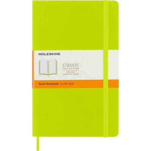 Moleskine Caderno clássico, capa macia, grande (12,7 cm x 21 cm), pautado/forrado, verde-limão, 192 páginas - Caderno clássico Moleskine: os cadernos clássicos da Moleskine são cadernos perfeitos para escrever diários, um diário ou anotações em aulas ou reuniões universitárias. Os cadernos Moleskine são adorados por viajantes e jornalistas por seu design fino. - Capa durável e fecho elástico: segure projetos e notas de escrita em seu caderno Moleskine com uma faixa elástica e pastas de armazenamento internas. Capa Moleskine clássica semelhante a couro e páginas grossas de papel marfim são perfeitas para escrever com canetas-tinteiro. - Cadernos de qualidade para presente: as agendas, diários e cadernos Moleskine vêm em capa dura ou capa mole e cores como preto, vermelho, azul, verde e marrom. A encadernação e a capa têm um acabamento durável, projetado para diário diário, escrita e esboço. - Páginas de qualidade luxuosa: as páginas grossas de papel marfim da Moleskine em um caderno Moleskine de capa dura, caderno Moleskine de capa macia, diário cahier ou volant ou planejador Moleskine são perfeitamente texturizadas para escrever com uma caneta esferográfica, caneta-tinteiro ou lápis. - MOLESKINE QUALIDADE: Somos dedicados à cultura, viagens, memória, imaginação e identidade pessoal — tanto física quanto digital. Trazemos esse compromisso com nossos cadernos, bolsas, aplicativos, canetas e cadernos inteligentes.