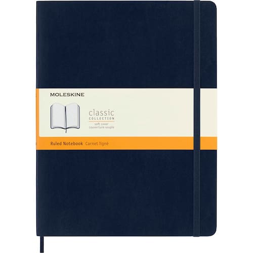 Moleskine Caderno clássico, capa macia, GG (19 cm x 24 cm), pautado/forrado, azul safira, 192 páginas - Caderno clássico Moleskine: os cadernos clássicos da Moleskine são cadernos perfeitos para escrever diários, um diário ou tomar notas em aulas ou reuniões da faculdade. Os cadernos Moleskine são amados por viajantes e jornalistas por seu design fino. - Capa durável e fecho elástico: mantenha projetos de escrita e notas em seu caderno Moleskine com uma faixa de fecho elástico e pastas de armazenamento internas. Capa Moleskine clássica semelhante a couro e páginas grossas de papel marfim são perfeitas para escrever com canetas-tinteiro. - Cadernos de qualidade para presente: agendas, diários e cadernos Moleskine vêm em capa dura ou capa mole e cores como preto, vermelho, azul, verde e marrom. A encadernação e a capa têm um acabamento durável, projetadas para diário, escrita e esboço. - Páginas de qualidade de luxo: as páginas grossas de papel marfim da Moleskine em um caderno Moleskine de capa dura, caderno Moleskine de capa mole, diário cahier ou volant ou agenda Moleskine são perfeitamente texturizadas para escrever com uma caneta esferográfica, caneta-tinteiro ou lápis. - MOLESKINE Qualidade: somos dedicados à cultura, viagens, memória, imaginação e identidade pessoal — tanto física quanto digital. Trazemos esse compromisso para nossos cadernos, bolsas, aplicativos, canetas inteligentes e notebooks.