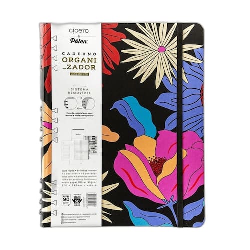 O Caderno Organizador Duo Pólen Pautado & Pontado 17x24 Tropicália Preto é o mais novo lançamento premium da Cicero: produto com novo sistema removível. Com furação especial tipo taça, o miolo permite ser organizado do seu jeito. Suas folhas podem ser retiradas e levadas para um curso, uma reunião, e depois colocadas novamente em seu caderno. Em formato wire-o, traz mais praticidade e o seu caderno pode ocupar menos espaço na sua mesa de trabalho e estudos durante o seu uso.