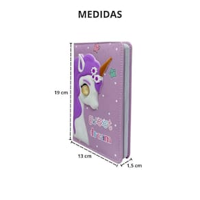 - Design Encantador: A capa macia é adornada com um desenho de unicórnio que conta com relevo delicado e glitter brilhante nos olhos, tornando-o uma obra de arte visual.