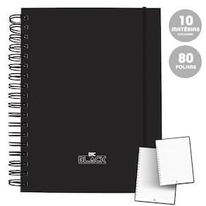 Caderno Smart Colegial 10 Materias 80Fl All Black Preto Dac