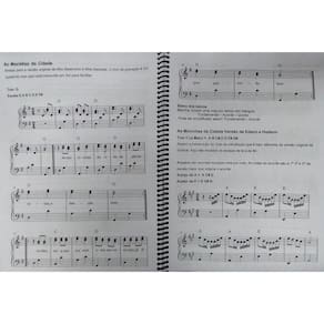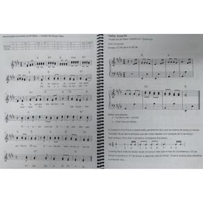 Apostila impressa e Encadernada com 100 Páginas 62 Músicas Transcrições das principais partes das músicas Muitas músicas com a melodia da voz toda escrita Introdução teórica sobre leitura na partitura Partituras escritas para o Teclado e Baixos Muitas músicas com Mapa Indicando as notas e a divisão do ritmo Explicações das escalas e ritmos nas músicas