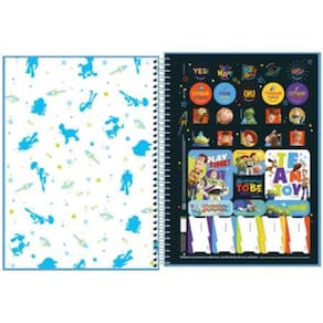 O Caderno Espiral Capa Dura Toy Story com a parte interna decorada, porta papel decorado para guardar trabalhos e anotações, folha com adesivos funcionais, folhas pautadas e espiral colorido Ideal para o dia a dia na escola ou na faculdade.