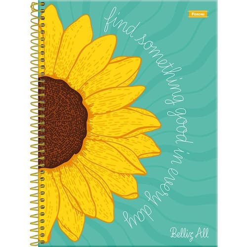 Capas enviadas de forma , conforme disponibilidade em . O Caderno Universitário Capa Dura Belliz All busca retratar a paz e calmaria que só os girassóis ícone-chave da temporada são capazes de transmitir. As capas são repletas de muito amarelo e frases motivacionais. Detalhes: 4 opções de capas Adesivo Especial Bolsa Plástica Espiral Dourado Formato: 200 x 275 Gramatura: 56 g/m Guarda Decorada Laminação Fosca N de FLS: 80 1 matéria Pauta Básica Verniz High Gloss Marca: Não Informado