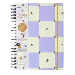 Especificações técnicas: - marca: cícero papelaria - dimensões: 20cm x 28cm - 160 folhas pautadas com divisões para 10 matérias - papel offset de qualidade com gramatura superior - ideal para canetas e lápis - espiral duplo em metal - capa dura resistente com design casa das abelhas lilás - contém bolsa pasta em papel offset 150g/m2 e elástico para fechar o caderno.