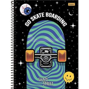 O Caderno Universitário Capa Dura Shape Street possui o universo do skate e todo o seu lifestyle, personalidade e atitude ilustrados em suas capas. Uma opção perfeita para os entusiastas do esporte. Detalhes: 4 opções de capas Adesivo Especial Bolsa Plástica Espiral Preto Formato: 200 x 275 Gramatura: 56 g/m Guarda Decorada Laminação Fosca N de FLS: 160 10 matérias Pauta Básica Verniz High Gloss Ean: 7908077454500