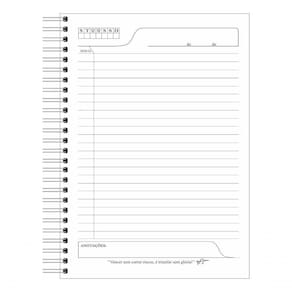 Na parte inicial do caderno você já ira notar o cuidado, pois possui bolsa plástica para documentos, dados pessoais e emergenciais, calendário 2023 e 2024 e planejamento anual. Já o miolo conta com espaço para data, dia da semana, horas e anotações.