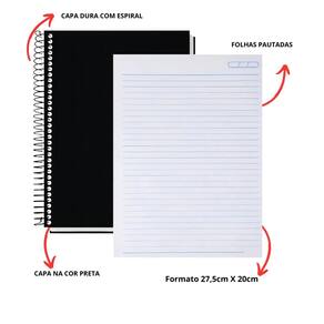 Possui capa dura na cor preta, com design minimalista e elegante, garantindo maior proteção e durabilidade. A encadernação em espiral facilita o manuseio, permitindo abrir o caderno totalmente e escrever com mais conforto. Características:Tipo: Caderno UniversitárioQuantidade de matérias: 1Total de folhas: 80Tipo de Folha: PautadaMedidas: 27,5 x 20cmCapa: DuraCor: PretoEncadernação: EspiralUso indicado: escola, faculdade, trabalho e anotações geraisItem incluso:1 Caderno 1 matéria 80 folhas Marca: Não Informado