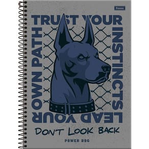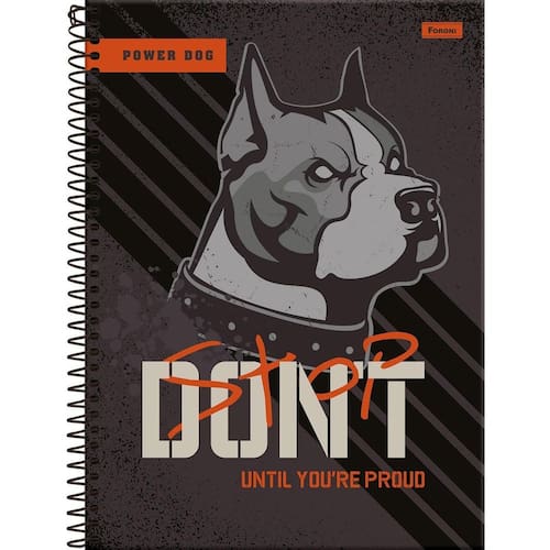 Capa enviada de forma , conforme disponibilidade em . O Caderno Universitário Capa Dura Power Dog apresenta um visual imponente, tons sóbrios e um personagem de muita atituda combinado com frases cheias de determinação. Detalhes: 4 opções de capas Adesivo Especial Bolsa Plástica Espiral Preto Formato: 200 x 275 Gramatura: 56 g/m Guarda Decorada Laminação Fosca N de FLS: 240 15 matérias Pauta Básica Verniz High Gloss Marca: Não Informado