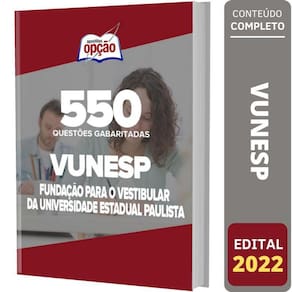 Caderno VUNESP - Questões Gabaritadas Caderno VUNESP - 550 Questões GabaritadasCód.: op-095jh-22-caderno-vunesp-gab-imp Páginas 138Edição OficialInstituição VUNESP Gabaritando é uma coleção pensada para quem está procurando por onde começar os estudos para concursos. Ela é composta pelas principais disciplinas, áreas e assuntos cobrados em concursos públicos dos mais diferentes cargos, conteúdo sistematicamente organizado, revisado e atualizado, apresentando-se como porta de entrada na preparação de estudantes de todos os níveis. Este material aborda os principais temas da área relacionada, construído de maneira didática e sem enrolação, tudo pra você não perder tempo enquanto se prepara para provas de seu interesse. Aqui você também vai encontrar questões de diversas bancas e instituições, assim você vai poder começar a sua preparação conhecendo um pouco mais da estrutura de diversas organizadoras. Vamos gabaritar juntos Bons estudos