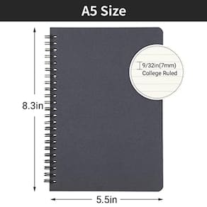 Cadernos EUSOAR College Ruled, pacotes de 6 pacotes de 5,5" x 8,3", 120 páginas, caderno espiral cinza A5 a granel, cadernos de escrita forrados de capa dura, conjunto de cadernos de esboços, composição de itens essenciais para reuniões de escritório, material escolar