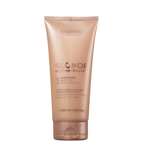Máscara acidificante para cabelos loiros. Cadiveu Blonde Reconstructor Acidic regenera de maneira intensiva e diminui a porosidade dos fios danificados pelo processo químico.