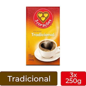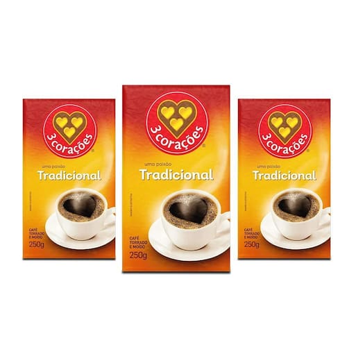 Café 3 Corações Tradicional a Vácuo Kit 3 Pacotes de 250g A tradição do café brasileiro na sua mesa