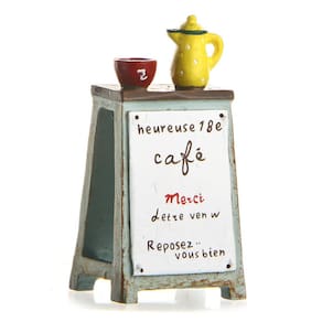 Material: Resina Tamanho: 3,6 × 7,2 cm Peso: 25 g ['Charming Café Sign Escultura: esta deliciosa escultura em resina apresenta uma placa de café em miniatura com um bule e uma xícara coloridos, adicionando um toque extravagante ao seu jardim, mesa ou decoração externa. ', 'Detalhe artesanal: cuidadosamente elaborado com detalhes finos, este ornamento inspirado em um café apresenta cores vibrantes e um design complexo, tornando-o uma adição marcante a qualquer espaço. ', 'Decoração versátil de jardim e mesa: perfeita para realçar paisagens de jardins, pátios ou até mesmo sua mesa ou parapeito de janela, esta peça pequena, mas atraente, traz calor e charme a qualquer ambiente. ', 'Material de resina durável: feita de resina de alta qualidade, esta escultura em miniatura é resistente às intempéries, garantindo que continue sendo uma característica duradoura em sua decoração externa ou interna. ', 'Tamanho compacto para fácil exibição: com dimensões de 3,6 × 7,2 cm e peso de 25 g, esta pequena escultura de café se encaixa facilmente em espaços pequenos, adicionando personalidade sem sobrecarregar o ambiente.']