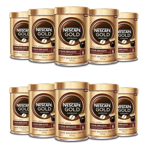 Café Solúvel Nescafé Gold Equilibrado Kit 10 Latas 100G